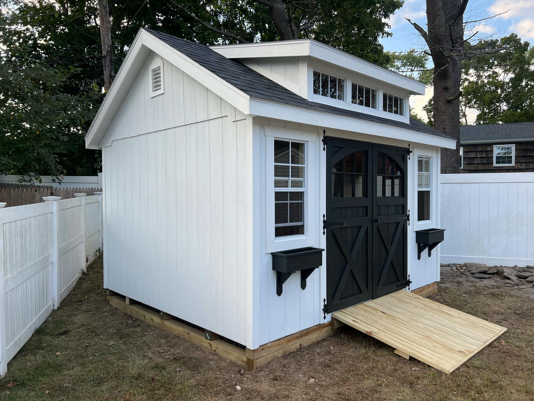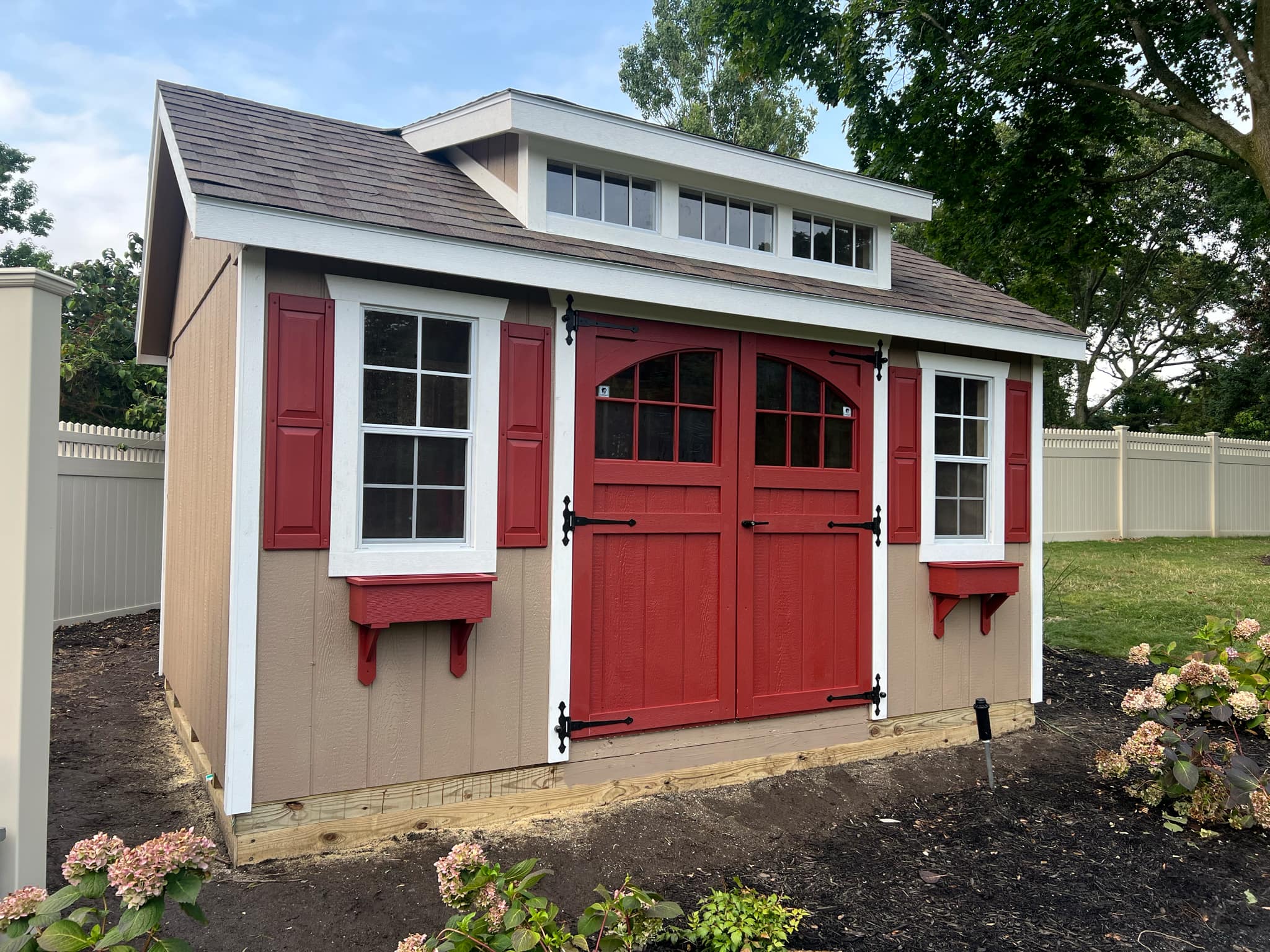 The Garden transom dormer style shed has a 7/12 Roof pitch with transom windows installed into the